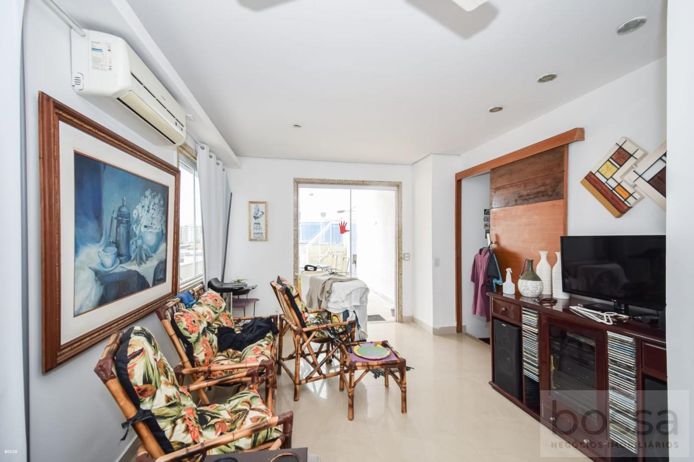 Linda cobertura duplex com piscina e churrasqueira na área externa.